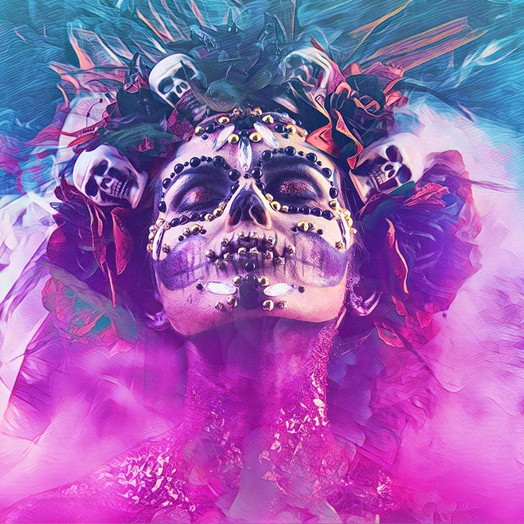 Mystische Dekorationen, Masken und eine vom Tag der Toten inspirierte Atmosphäre.